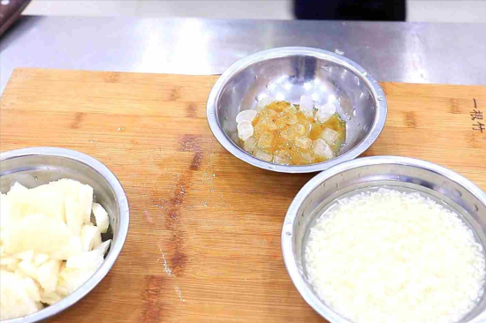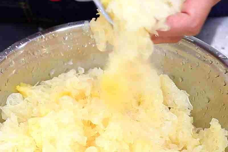 1.首先把银耳用凉水浸泡1个小时,泡发以后去除黄色的硬根,再剪成小块,银耳一定要用凉水泡发,口感才会清脆,用热水泡出来比较绵软,而且不容易出胶。