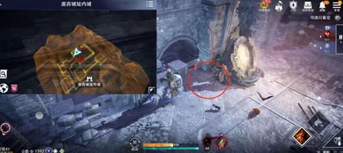 然后我们就顺着小鹰的行动轨迹去到外城的这个位置,第三个痕迹就在【外城】与【入口】的交界处,一般来说我们从内城跑到这个位置时会拉到一屁股的怪,烦人得很,所以建议多走两步,先去一次【废弃城址入口】再回外城,这样就能安心摸痕迹了。