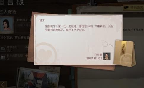 如果NPC拜访庄园期间幸存者外出执行任务,NPC会在留言板留言,并放下礼物离开。