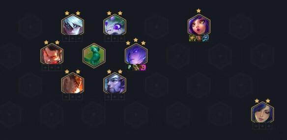 最后升8人口找剑豪和3星蜘蛛,可以升9的话可以挂慎来补3怒翼龙和2狂刃战士,或者补2幽影给敌方上DEBUFF。