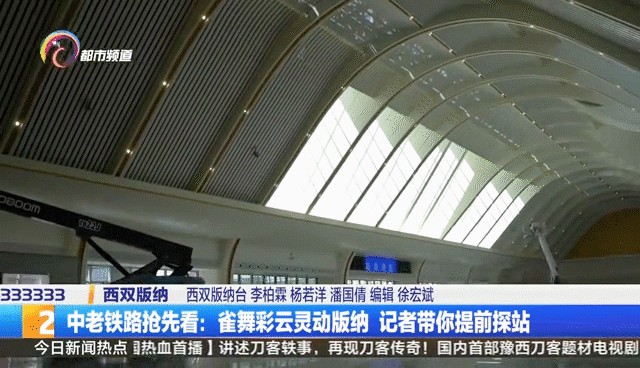 记者 潘国倩:“我现在在中老铁路玉磨段的西双版纳站站前广场,整个站前广场占地面积85146平方米,包括站前广场、下沉雨林广场,两侧还建立了游客服务中心、广场管理中心、客运中心等建设项目,铁路开通后这个以“雀舞雨林”为设计灵感的西双版纳站站前广场将成为西双版纳新的文化旅游标识。”