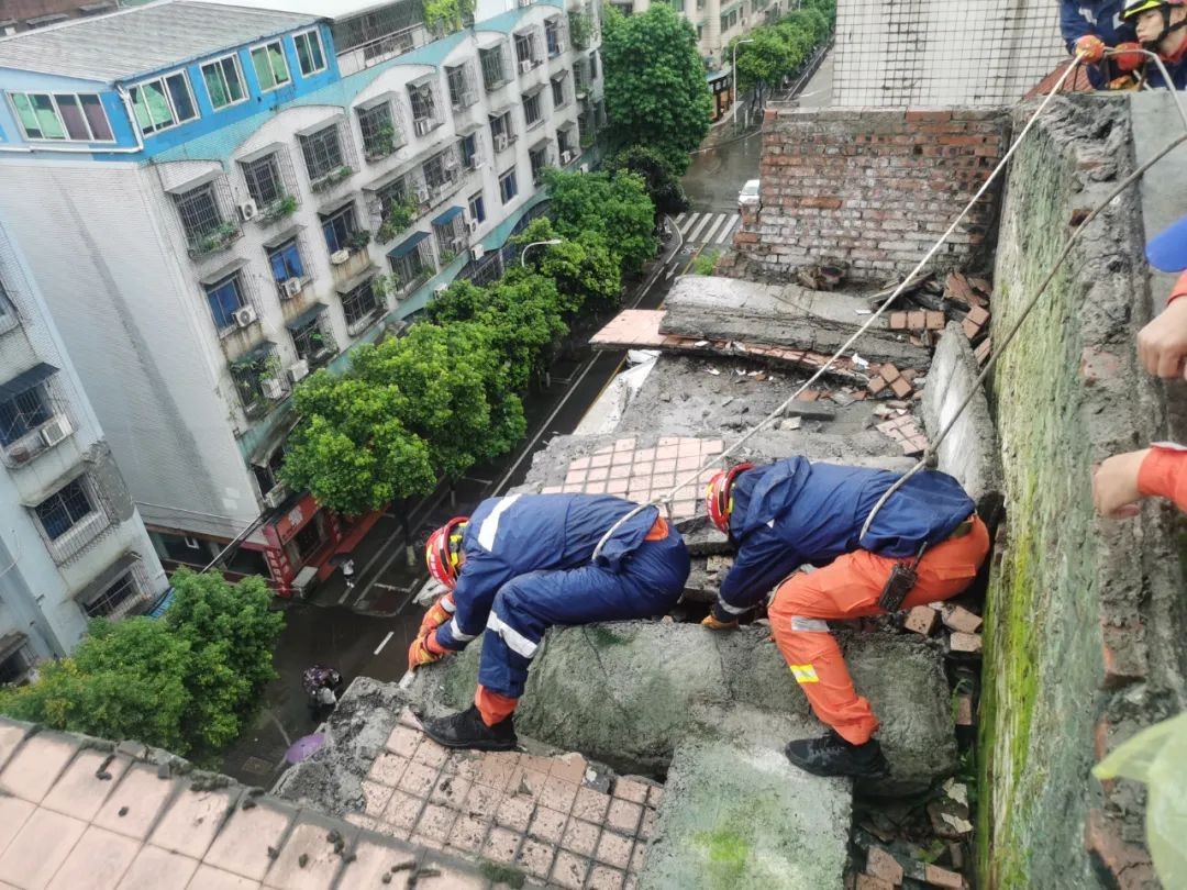 四川省森林消防总队特勤大队指战员排查处置受损房屋险情。