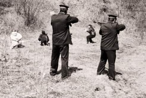 他们刚刚才被从公审公判大会现场被带出,准备执行死刑。警务人员核对完他们的身份之后,只听一声令下,枪声响起,几名犯人应声向前倒下去。