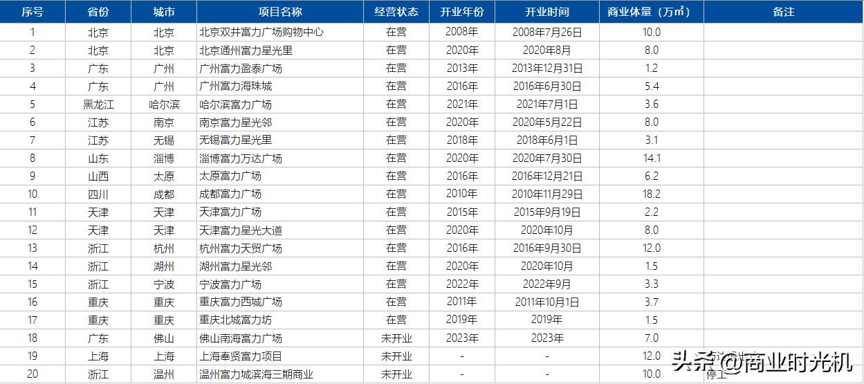 附表:广州富力集团全国20座商业项目清单(包含未开业项目)