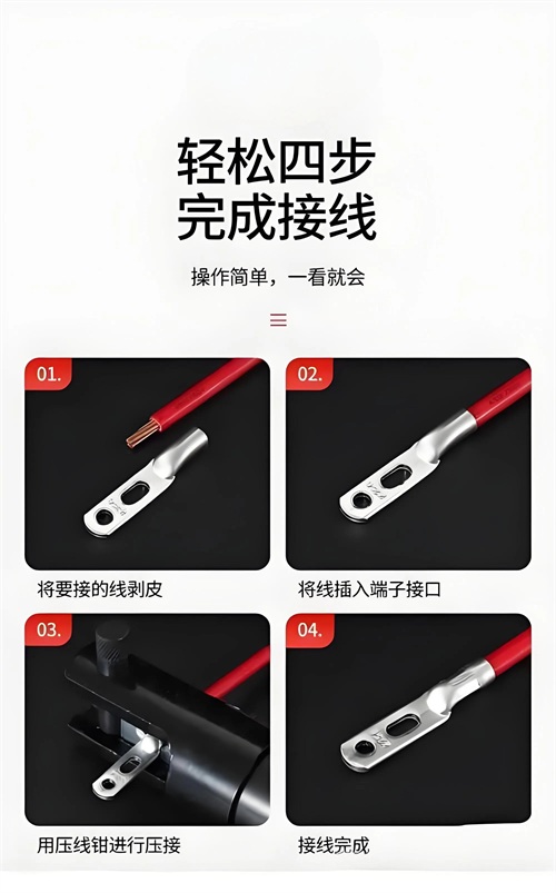 接线鼻子在电气中主要用于电线与小型电源件的连接,通过螺丝拧紧固定,确保连接的牢固性和导电性。以下是接线鼻子的主要作用: