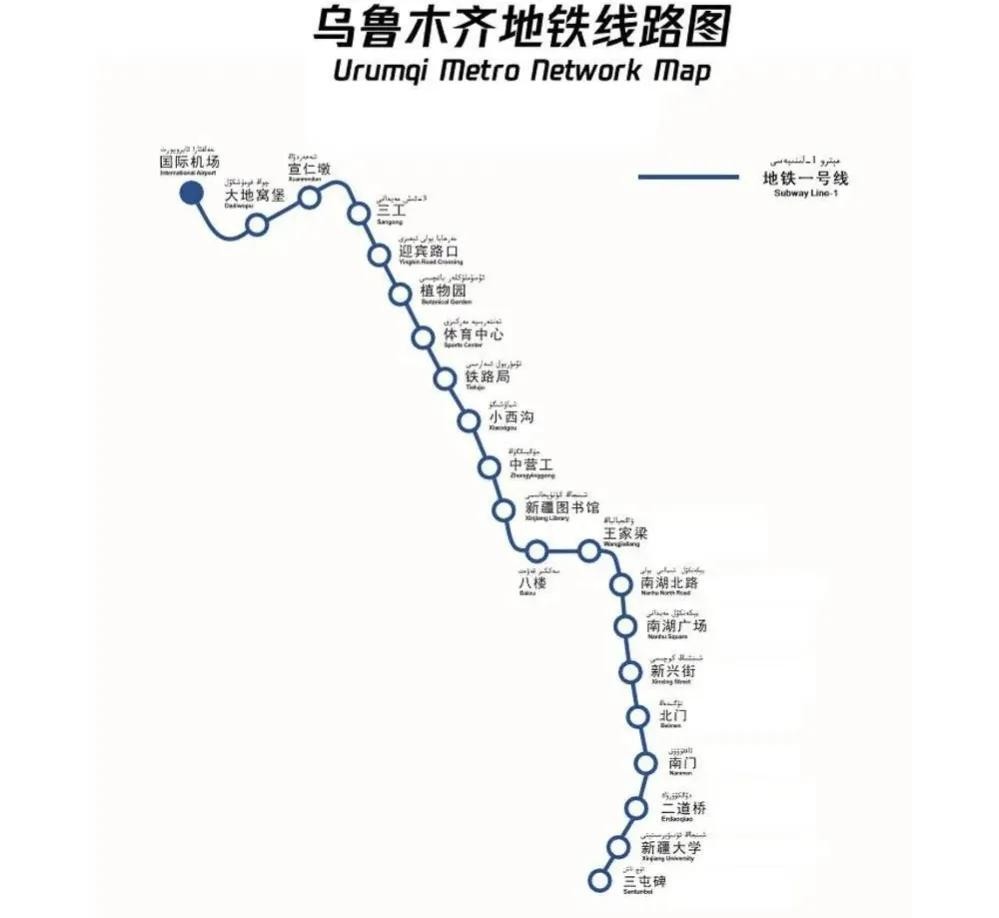 乌鲁木齐只开通了一条地铁线路,2号线还在建设中,整个地下交通还未形成网络,仍需要加紧建设。