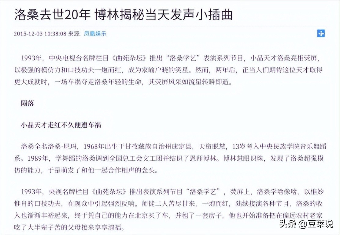 信息来源:凤凰娱乐2015.12.3——洛桑去世20年博林揭秘当天发声小插曲