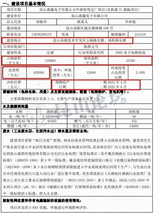 鼎鑫电子新厂规模不小,预计总投资42亿,分两期建设,预期投产日期:一期2023年4月,二期2026年6月。