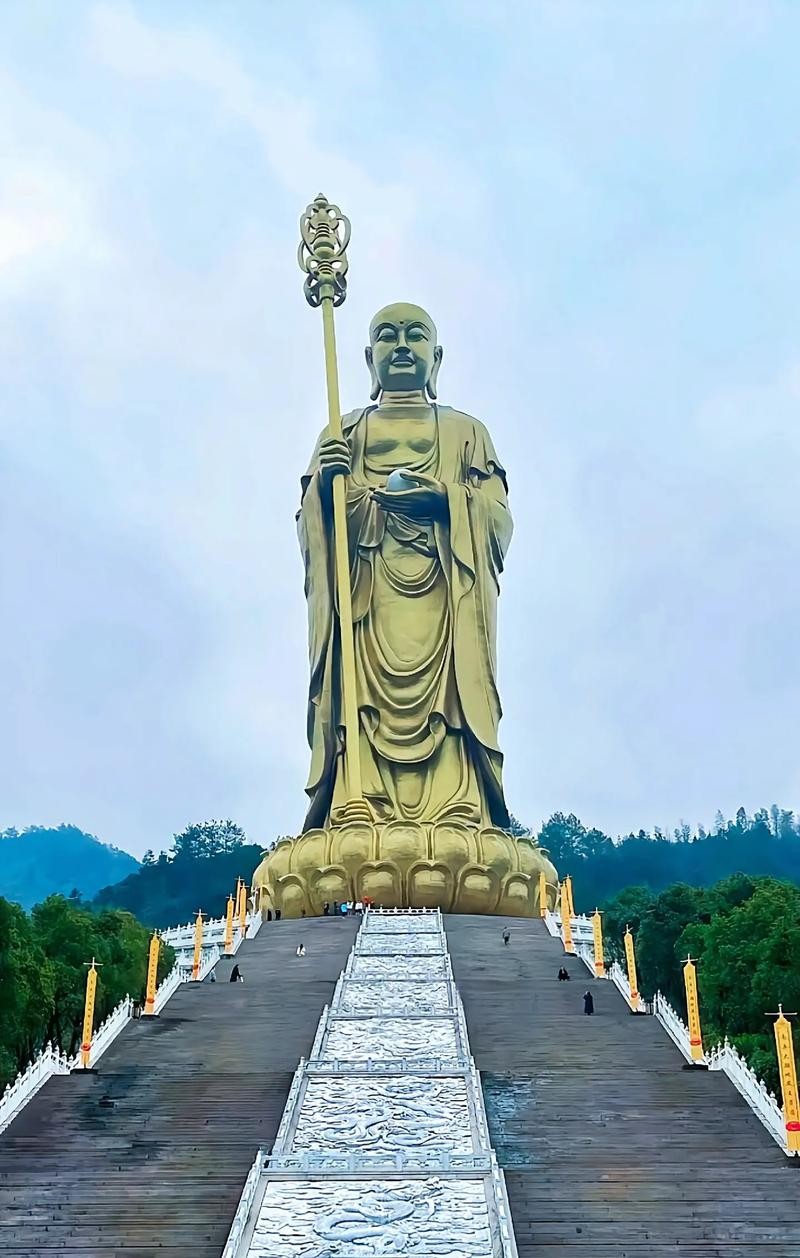 他的形象是一位头戴毗卢帽的比丘,手持锡杖,象征着"振锡声中,惊醒众生"。他的坐骑谛听,是一种能分辨善恶的神兽,表示修行要有明确的善恶判断。