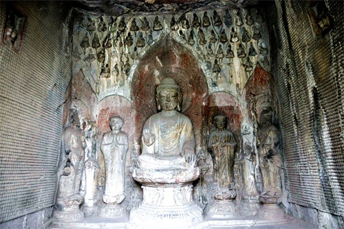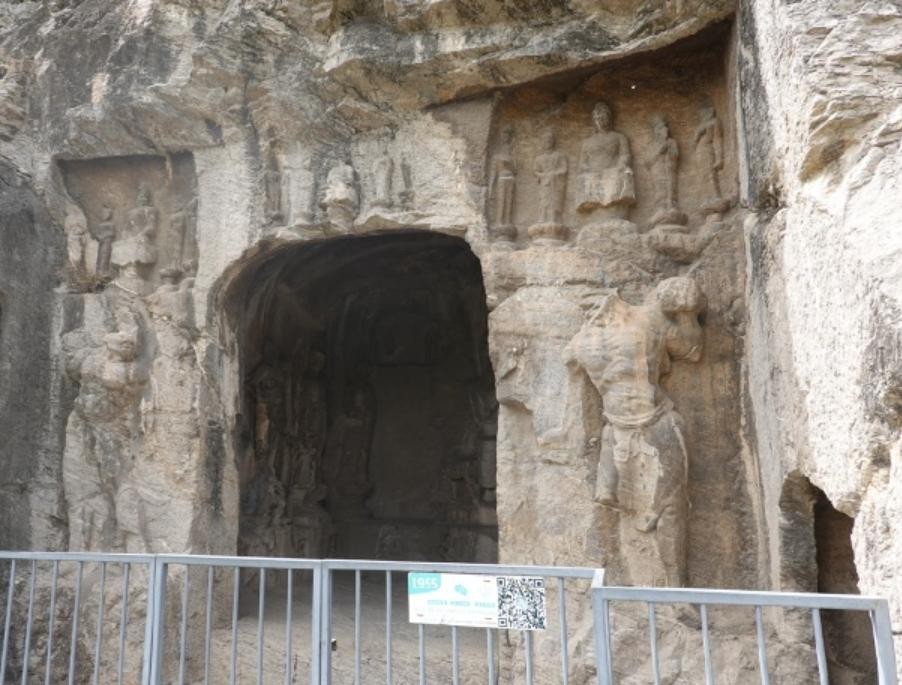 经过浅溪寺,我们就来到了龙门石窟最早开凿的石窟宾阳三洞,宾阳三洞开凿于北魏时期,是北魏宣武帝为他的父亲孝文帝做功德而建。它开工于公元500年,历时24年,用工达到了802366个。后因为发生宫廷政变以及主持人刘腾病故等原因,计划中的三所洞窟(宾阳中洞、南洞、北洞)仅完成了一所即宾阳中洞,南洞和北洞都是到初唐才完成了主要造像。