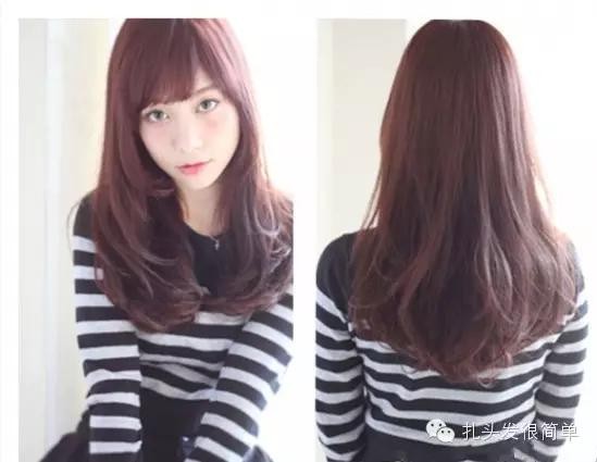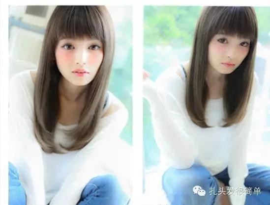 发型点评:可爱的韩式斜刘海加上中长内扣直发,轻而易举就能打造出校园青春的少女感,然后把棕色染发的头发自然披肩,瞬间就能助mm散发出清新与纯美的气质来。