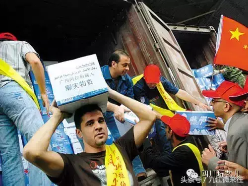 在广州生活阿拉伯人向灾区捐物资。