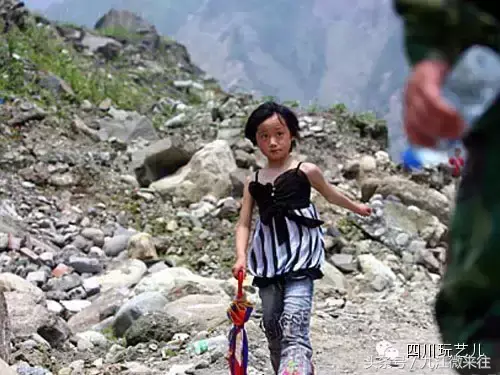 一个从汶川县灾区步行出来的孩子。