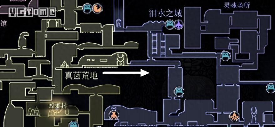 从真菌荒地向左,一路蹬墙跳,进入泪水之城。