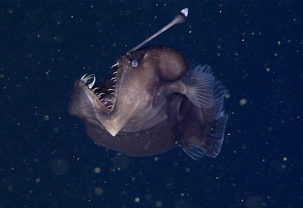 深海鮟鱇这种鱼属于鮟鱇鱼目,正式的中文名称是深海鮟鱇鱼,但很多人俗称它灯笼鱼。鮟鱇头部上方形似小灯笼的肉状突出,是由鮟鱇鱼的第一背鳍逐渐向上延伸形成的。