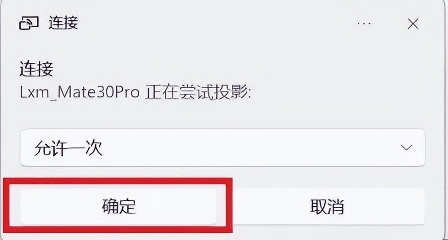 3.随后电脑上会显示出有设备尝试连接投屏,我们点击同意,就可以开始投屏了。