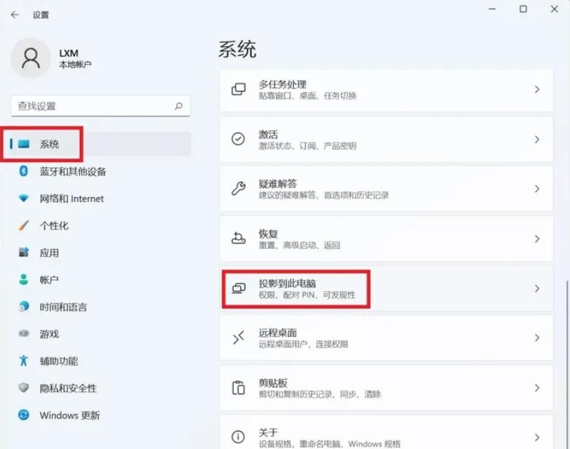 1.首先在电脑的设置-系统中,找到“投影到此电脑”。