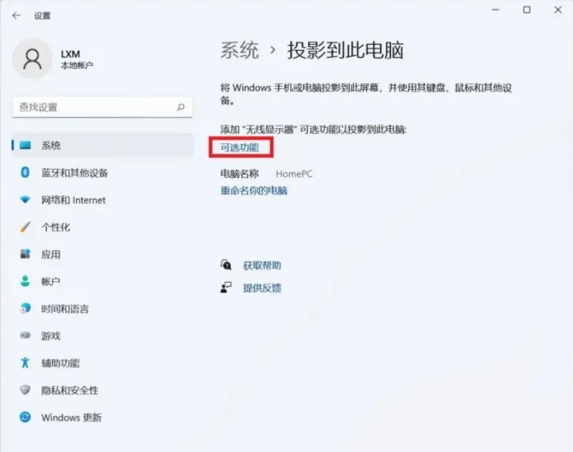 2.点击其中的“可选功能”