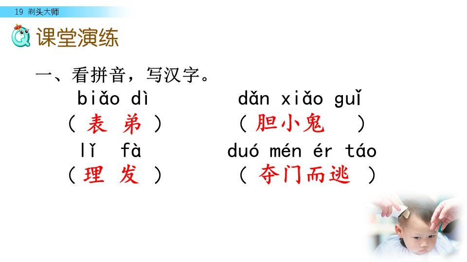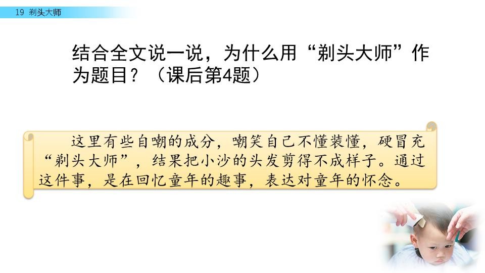 三年级语文下册《剃头大师》课文学习、课后习题参考答案
