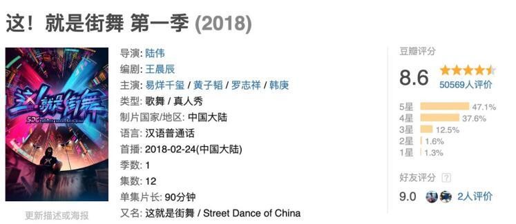 因而,《这就是街舞》播出后好评如潮,超过5万名用户在豆瓣给出8.6的评分,成为2018年口碑最好的头部网综,也为优酷“这就是”系列奠定了高品质的基础。
