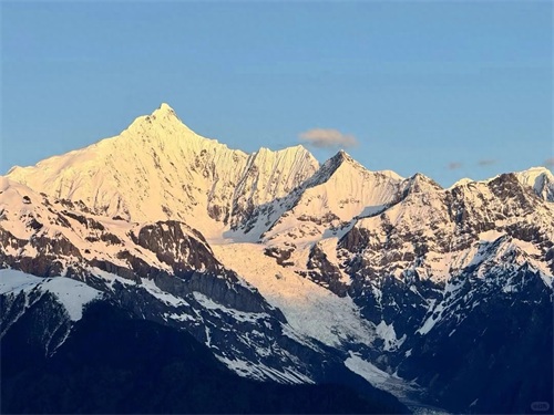 梅里雪山,位于云南西北边陲,太子十三峰连绵而成,主峰卡瓦格博峰海拔6740米,冬季晴朗少云,是观看日照金山的最佳时期。