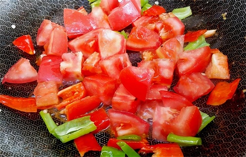 第3步:之后就要把准备好的西红柿以及辣椒倒进去焖煮一下。然后再把适量的辣椒、蒜米以及姜片一起下锅将它们爆炒溢出香味之后就可以把西红柿一起翻炒片刻,然后再把煎好的鱼放进去一起焖煮,这时候的火候要注意不用开太大,转小火就好了,然后再加入适量盐以及酱油调味即可。