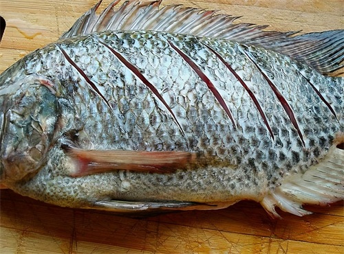 第1步:首先要把准备好的鱼放在清水下洗干净。然后再把鱼的内脏摘除掉,用刀把鱼鳞刮掉,把鱼放在案板上就可以用刀在鱼身的两面斜划几刀,然后再内外都冲洗干净,沥干水后用盘子将它装起来放在旁边备用即可。这时候就可以切一些配菜。把准备好的西红柿、姜、辣椒、蒜米全部放在清水中洗干净,洗干净之后就可以把它们切成小块,切好备用。