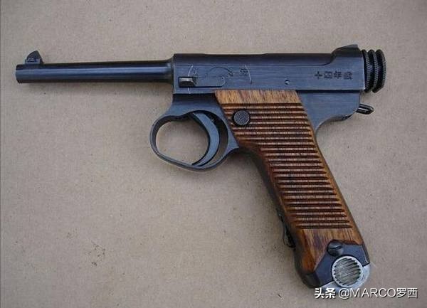 原名大正十四式手枪,日本部队装备,该枪因配有一个圆形枪套,形同一个乌龟壳,因此称之为“王八盒子”,该枪性能极差,距离一远子弹就乱飞,穿透力差,厚一点的棉衣也无法击穿。