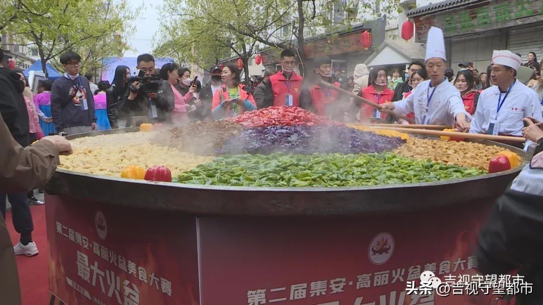 记者现在所在的位置是第二届集安高丽火盆美食大赛的现场,来到集安不得不说的美食,就是我身后的这种高丽火盆。巨大的高丽火盆一会将供市民们一起去品尝。来到这里,集安火盆文化也代表着集安的独特魅力。