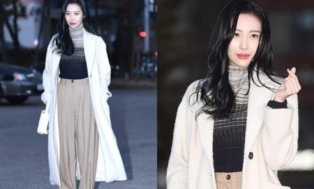 今年流行比较宽松的领口和衣身。把宽大的领口竖起来,不仅能够很好的保暖还能显脸小,很好的起到了修饰脸型的作用。