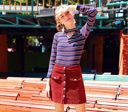 条纹毛衣一直是经典,今年更是开始流行彩色的条纹毛衣。相比传统的条纹毛衣,色彩的碰撞更凸显了女生的活泼,增加了趣味感。