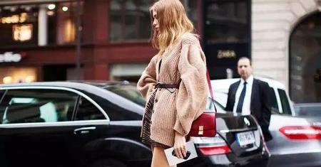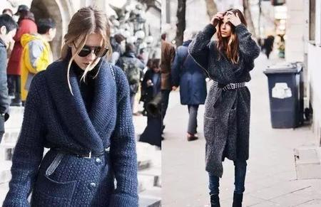 在毛衣外面系上一根宽腰带的穿法,能够很好的综合掉毛衣过于蓬松宽大的毛病,凸显出来你的腰身。腰带的质地与毛衣可以形成很好的对比,使得整体搭配更有调性,摩登味十足。