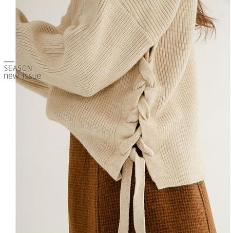 今年系带毛衣大热,无论是在领口、后背或是下摆加一个简单的系带,就能让普通的毛衣变得特别起来,很适合用来凹造型。