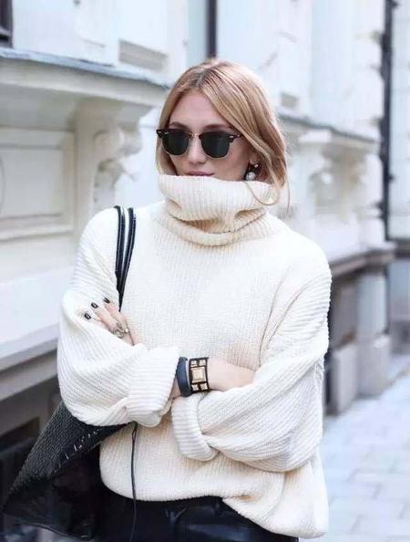 高领毛衣能轻松打造出慵懒时髦的范儿,是今年的大热单品。