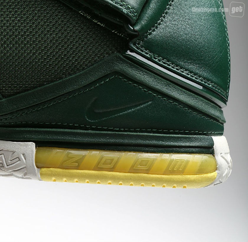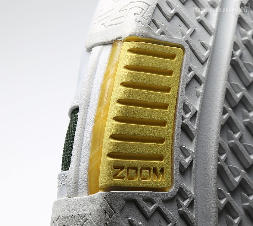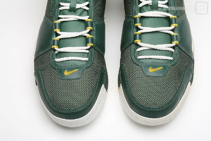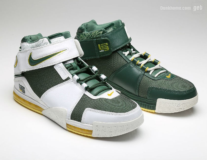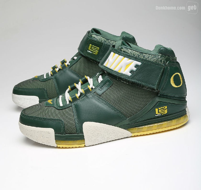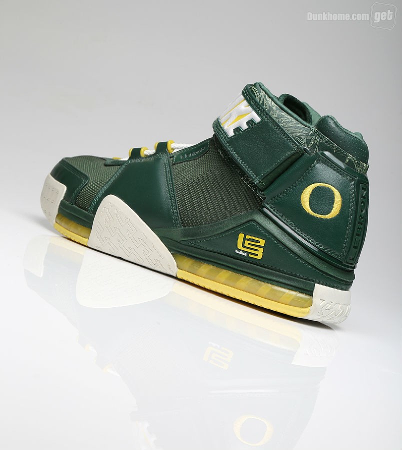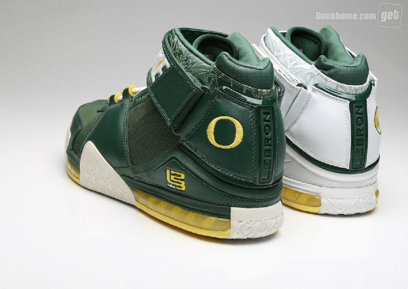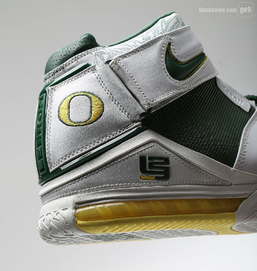 而我们今天所看到的并非是普通的Nike Zoom LeBron 2,因为它打上了“Oregon”的字眼,从它出生那一天起,就已预示着它的不平凡,主场和客场配色都将白,绿,黄定位主基调,两双鞋虽仅仅是颜色面积大小的变化,但给人却给人以一种截然不同的感官体验。