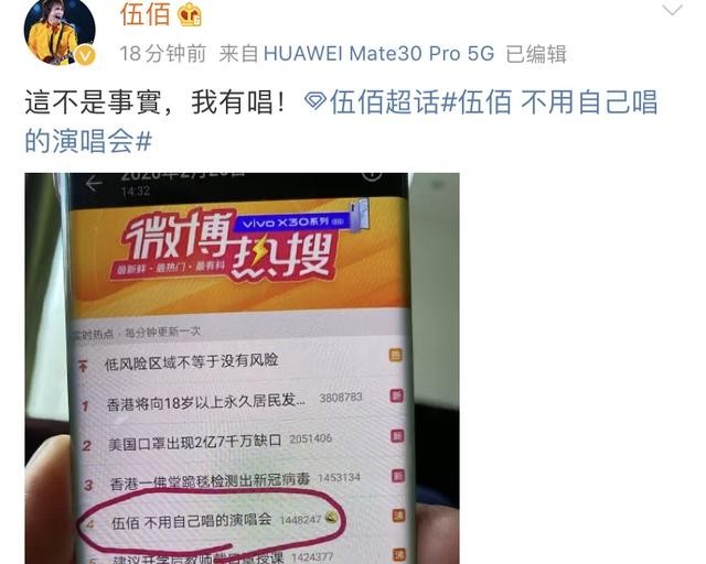 演唱会不用自己唱?伍佰晒热搜自侃:“这不是事实,我有唱!”