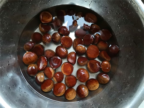 1、板栗用盐水浸泡一会,然后清洗干净,去掉表面的杂质、灰尘等,然后控干水分。
