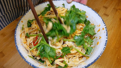 豆皮的口感柔韧有嚼劲,吃在嘴里有着浓浓的豆香味,除了做炒菜或卤菜外,用豆皮做凉拌菜也最合适不过了,今天我们用豆皮做一道凉拌菜,口感柔软,味道香辣,喜欢吃豆皮一定别错过。