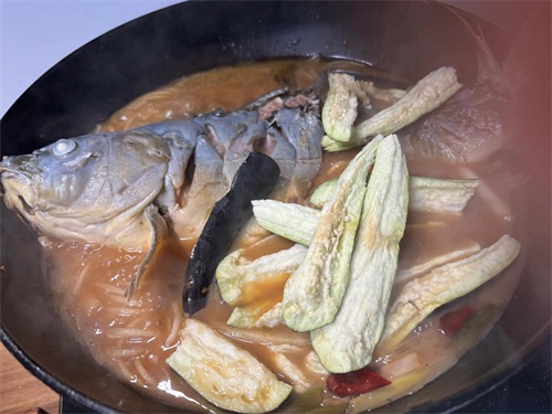 2.茄子在炖鱼的时候加入两根.能吸收鱼的汤汁,味道浓郁,浑然一体。