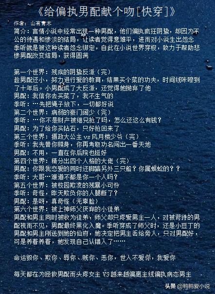 2、男主是同一个人,大部分故事基本都是he结局。
