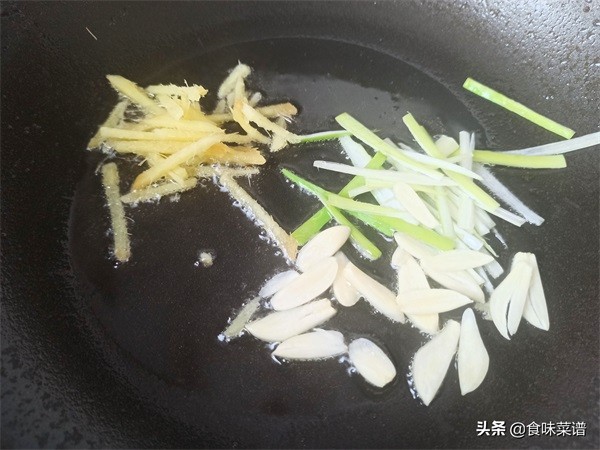 4、锅中烧热油,等油温7成热时,下入葱姜蒜,翻炒出它们的香味。