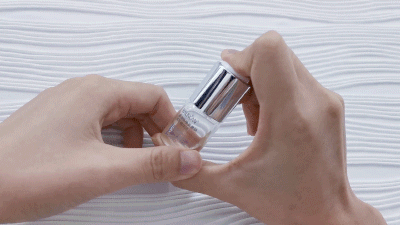 先打开“修复弹”,轻轻按一下按钮,隐藏在盖子里的活性冻干粉,就会释放到下面的精华液中,修复因子“嘭”的一下就被激活了!