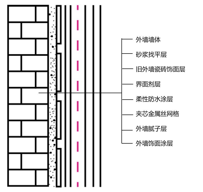 图5 老旧瓷砖外墙防水防脱结构做法