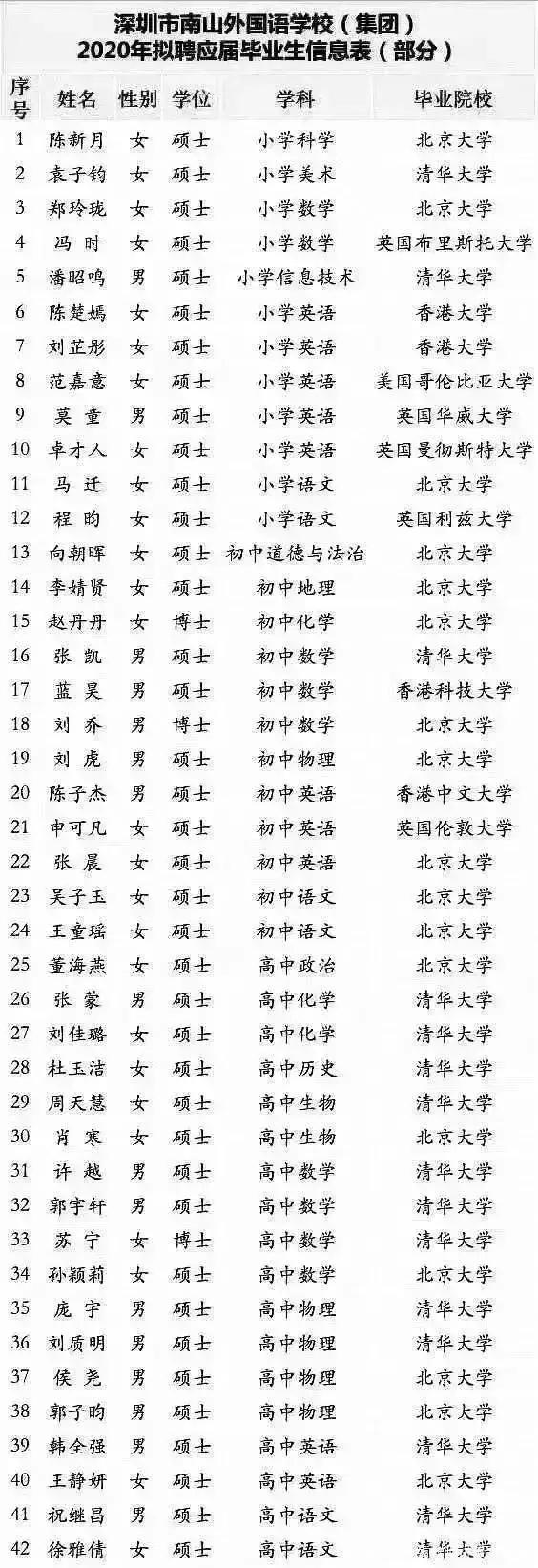 再来看看深圳南山外国语学校2020年拟招聘教师的学历