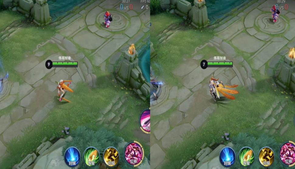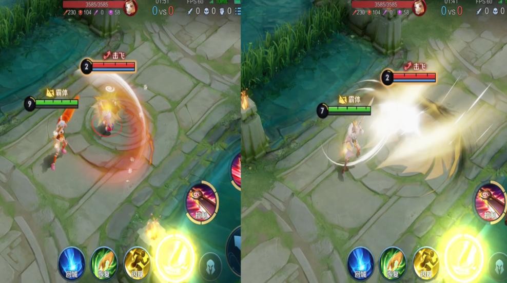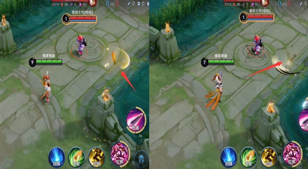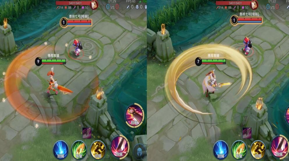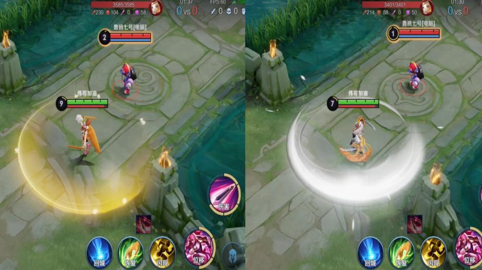 普攻特效对比,说实话两款皮肤的特效都差不多,冠军飞将虽然是传说皮肤,但看起来并不怎么华丽的样子。