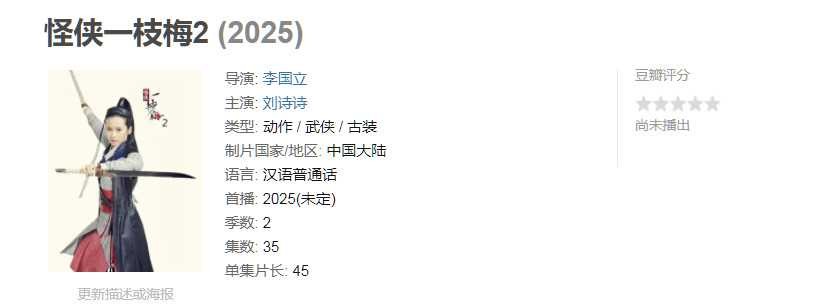 网传《怪侠一枝梅2》要启动,胡歌、霍建华、刘诗诗有望再同框