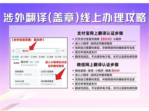 这里为大家推荐一种极为便捷的办理方式:在某付宝或者某信中搜索 “慧办好” 小程序,打开其中的翻译业务,依照平台给出的清晰提示,即可轻松完成办理流程。这种线上办理模式优势众多,不但能为用户节省大量时间与精力,还采用了先进的安全技术,充分保障用户个人信息安全,有效规避信息泄露风险,让用户安心无忧。