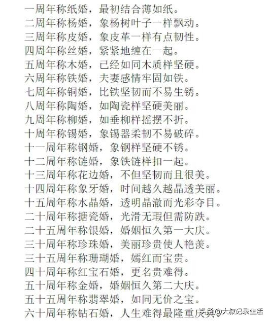 结婚几年是什么婚的对照表,结婚第一年为什么叫纸婚?