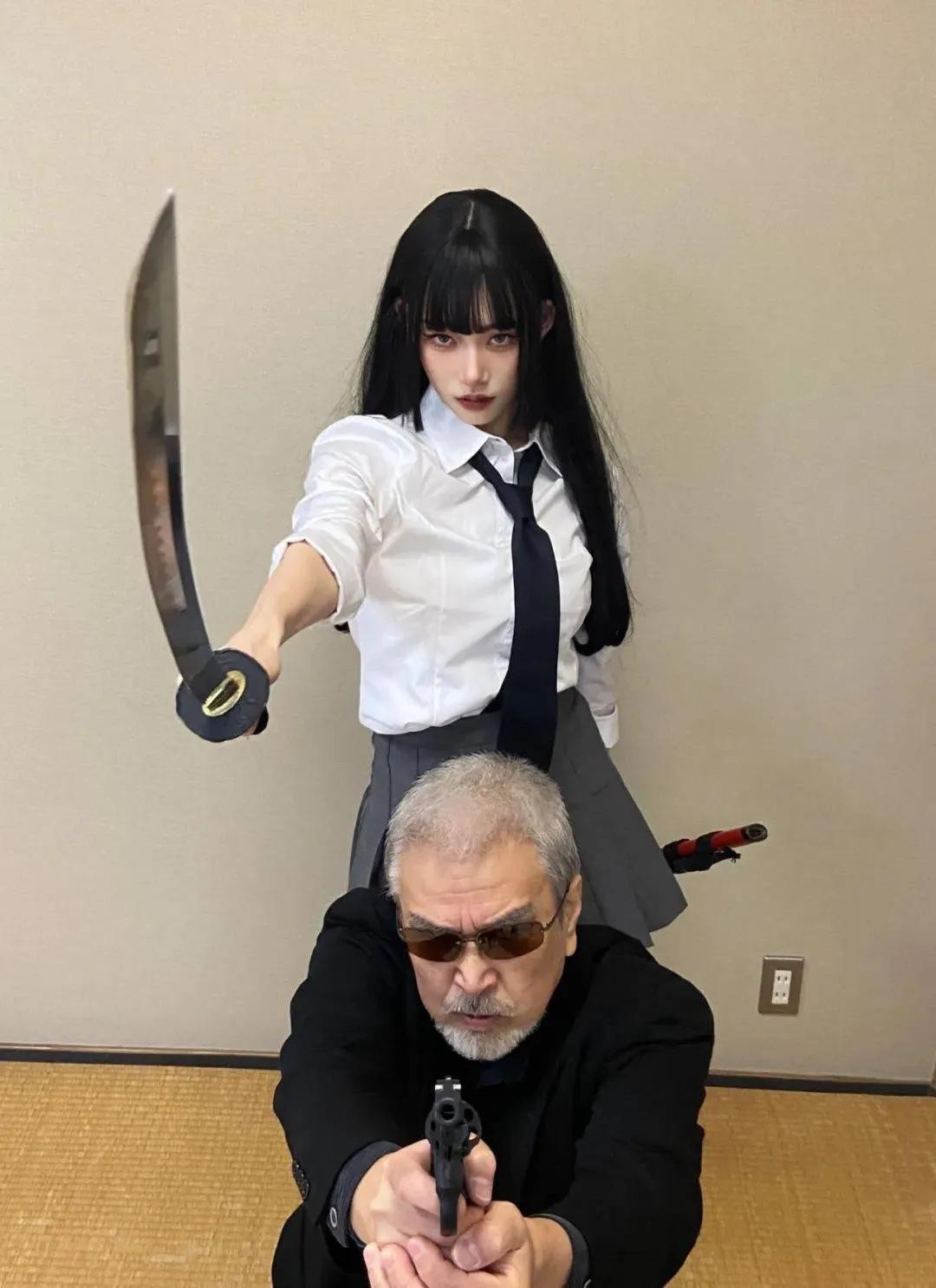谷口布实的照片中展现出了她与众不同的气质。她的外表既有着甜美可爱的一面,又透露出一种不羁和坚韧。她的眼神中充满了自信和神秘感,让人不禁想要深入了解她的故事。而爸爸展现的是黑道大佬,本来就是他频繁出演的角色。