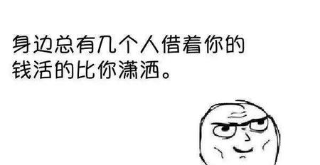 我有一个同学,经常和我借钱,我给他借时,他说一有马上还了。那时候,我肯定很信任他的啊,然而过了一段时间他也没还。但是,据说他最近买这买那的,还带女朋友出去逛逛街玩耍啥的,我就特别感到这人有问题。不是说好的有钱就还的嘛,有钱也没见给我。就这样,有一次我在半路碰上他买东西回来。然后有点尴尬,刚想问他但我也不好意思开口,然后我就故意装很惊讶的眼神说那么土豪嘛,买了那么多东西了?于是他跟我的打招呼方式居然是去哪里玩啊之类的,完全没有跟我借过钱一般。就这样插肩而过了,我也只好无奈了。。。。